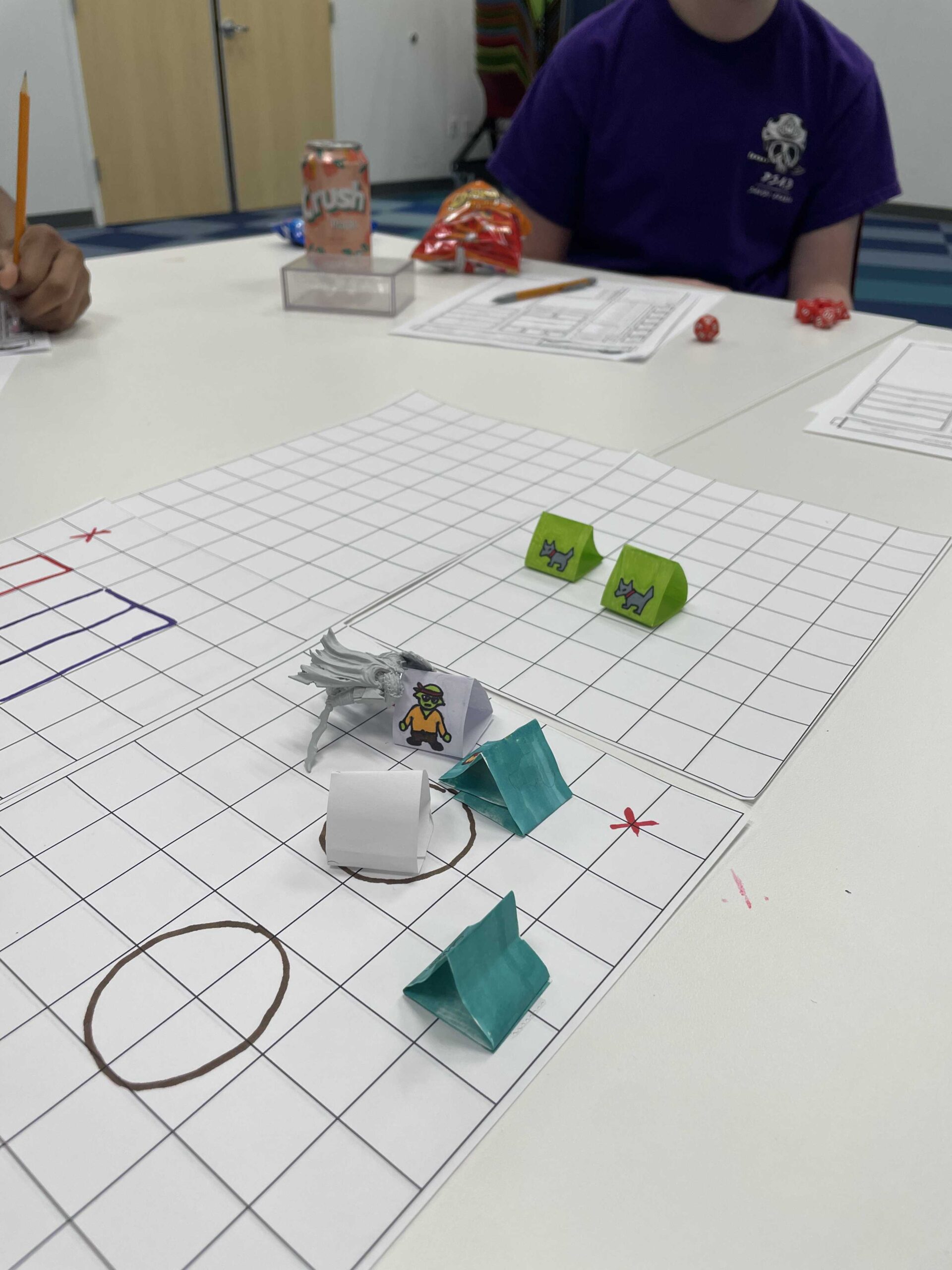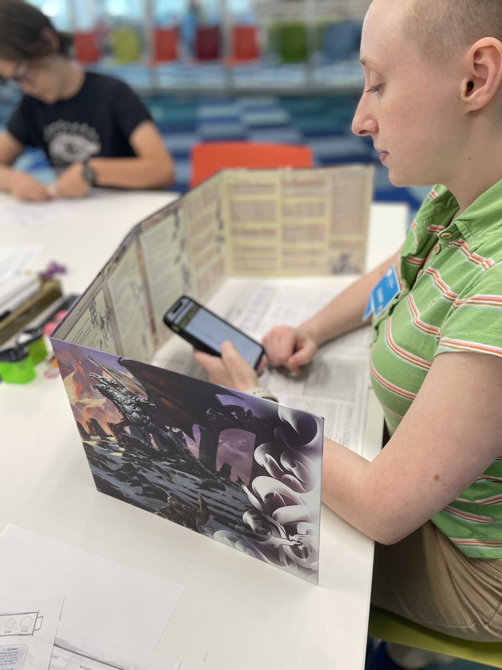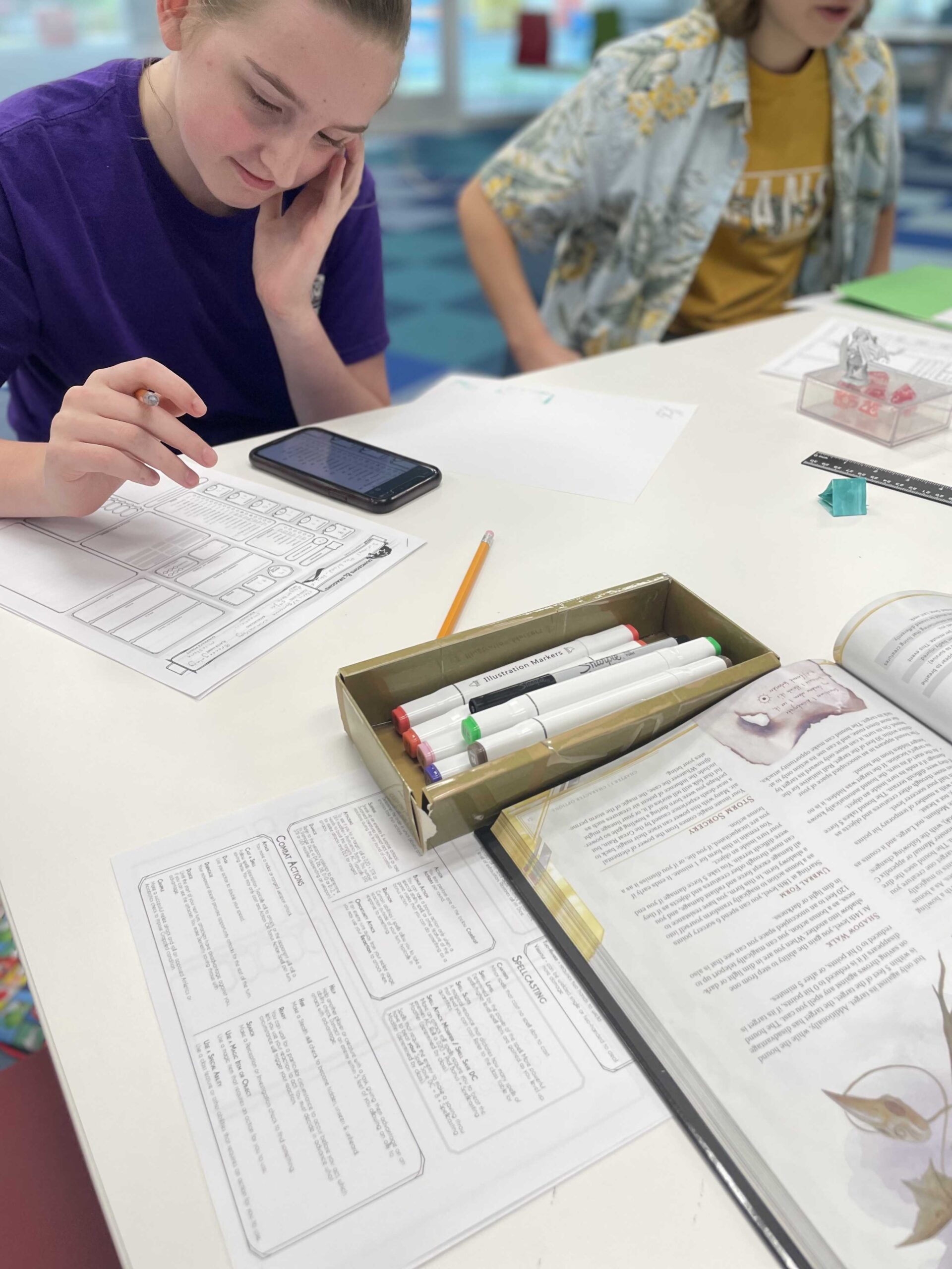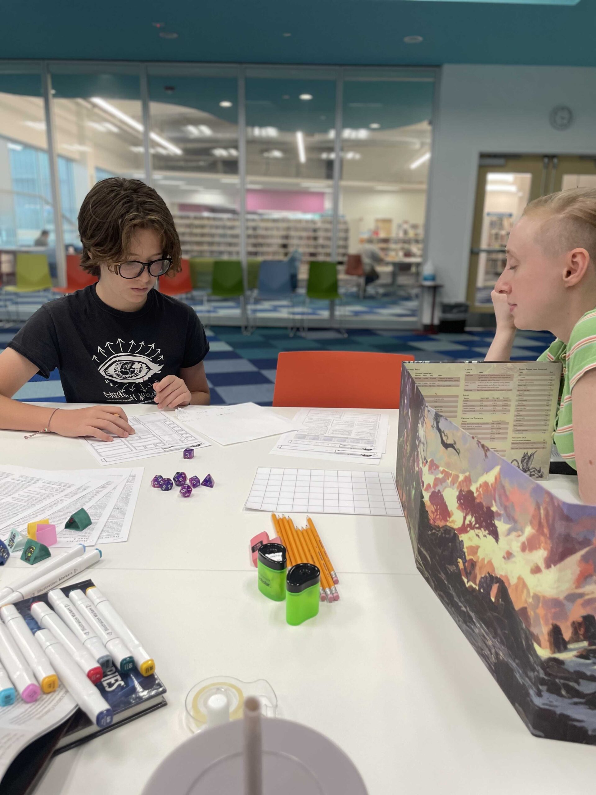 Up until now, I have been DMing for them (running the game), but as the program has expanded, I’m in the process of teaching teens how to DM for each other, and now some volunteers are getting involved too!
