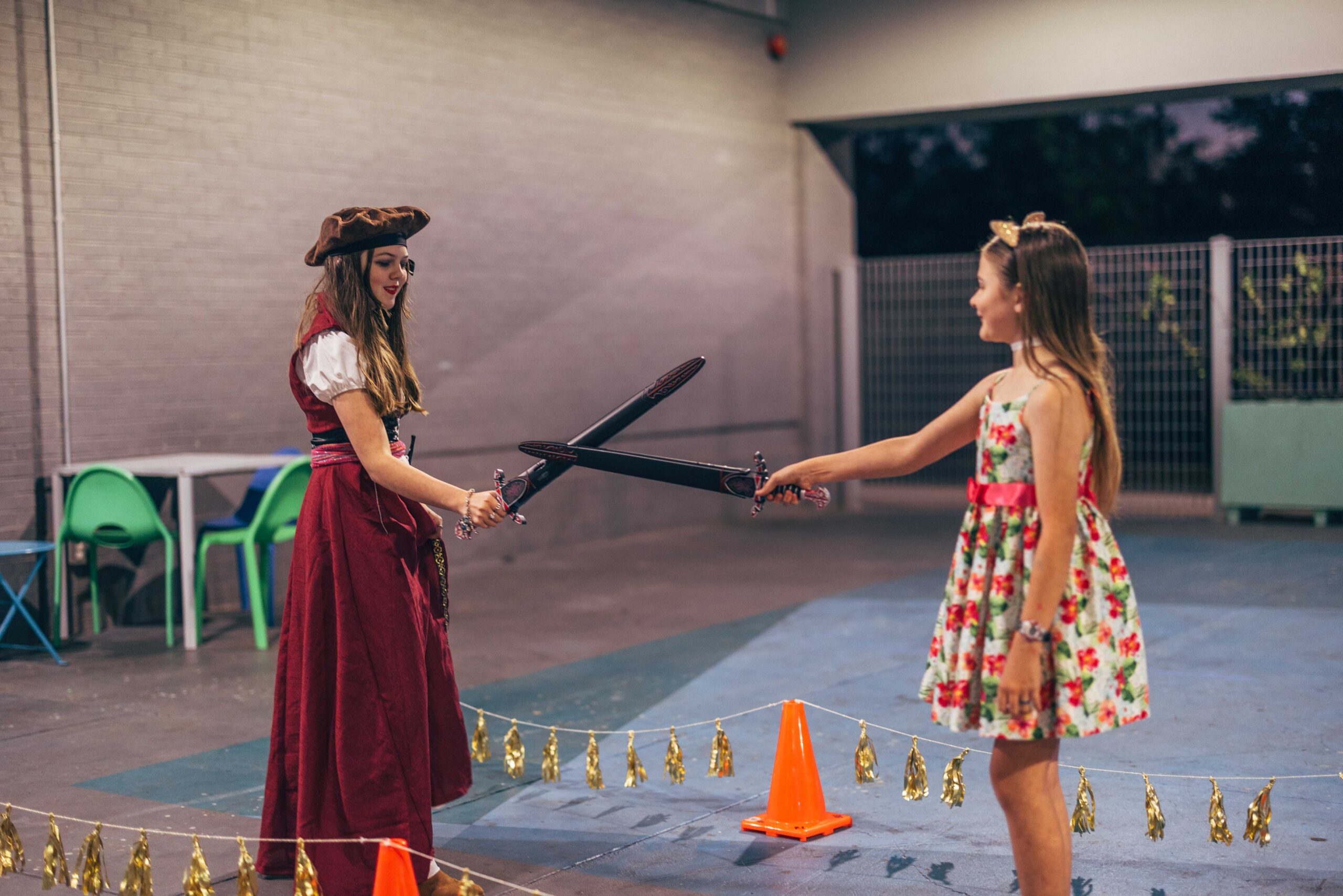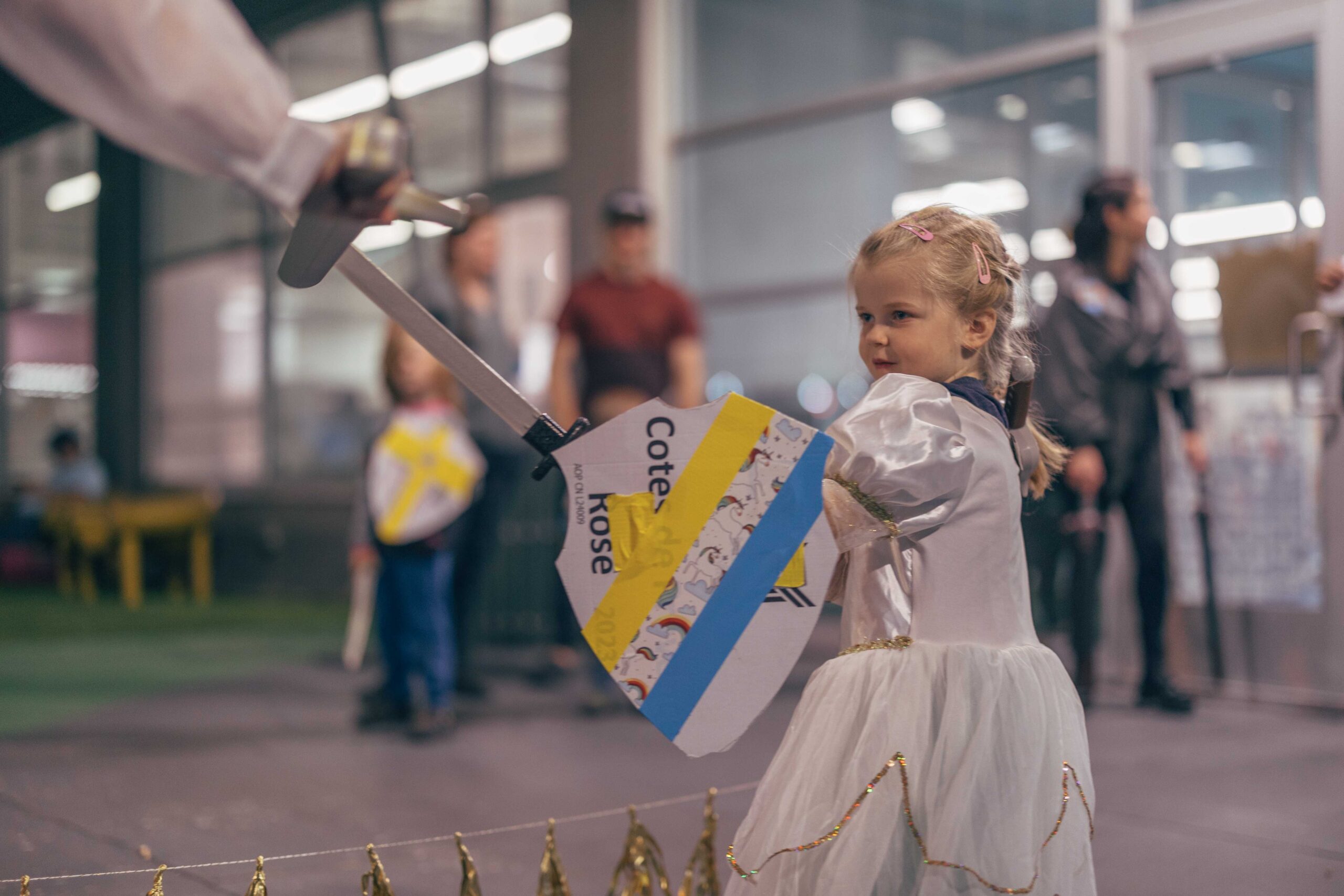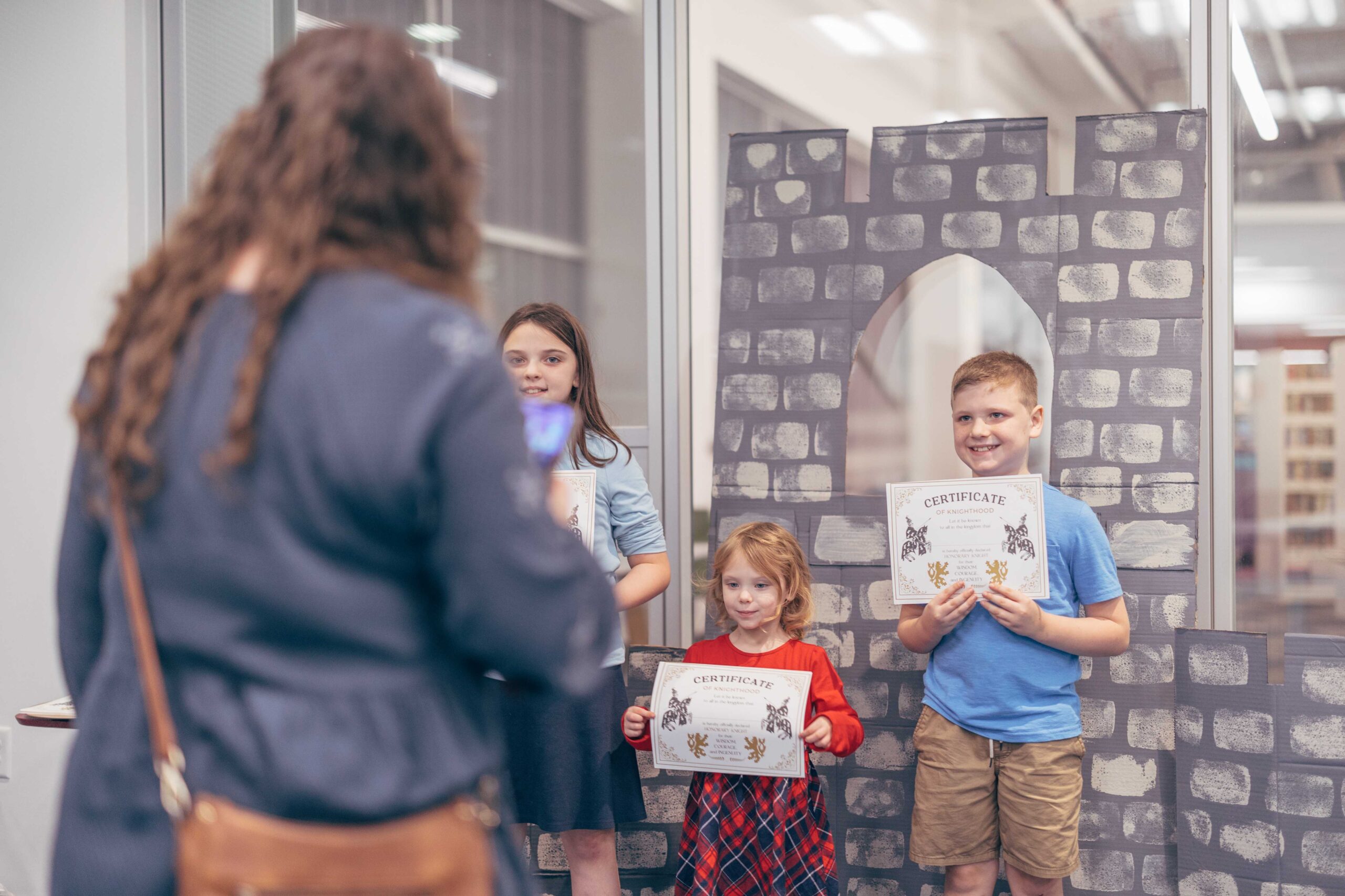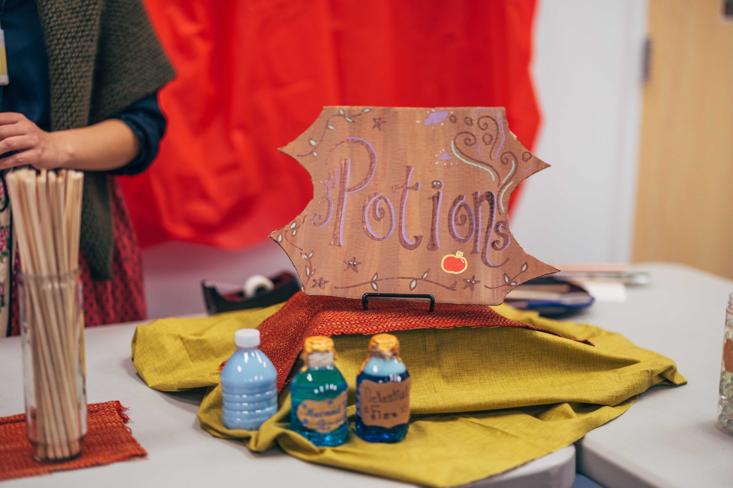Activities included trinket trading, making your own coat of arms, making potion bottles, weaving looms, a dueling sword fight arena with foam swords, various riddles to solve, and a knighting ceremony. We also played “bardcore” versions of popular songs!