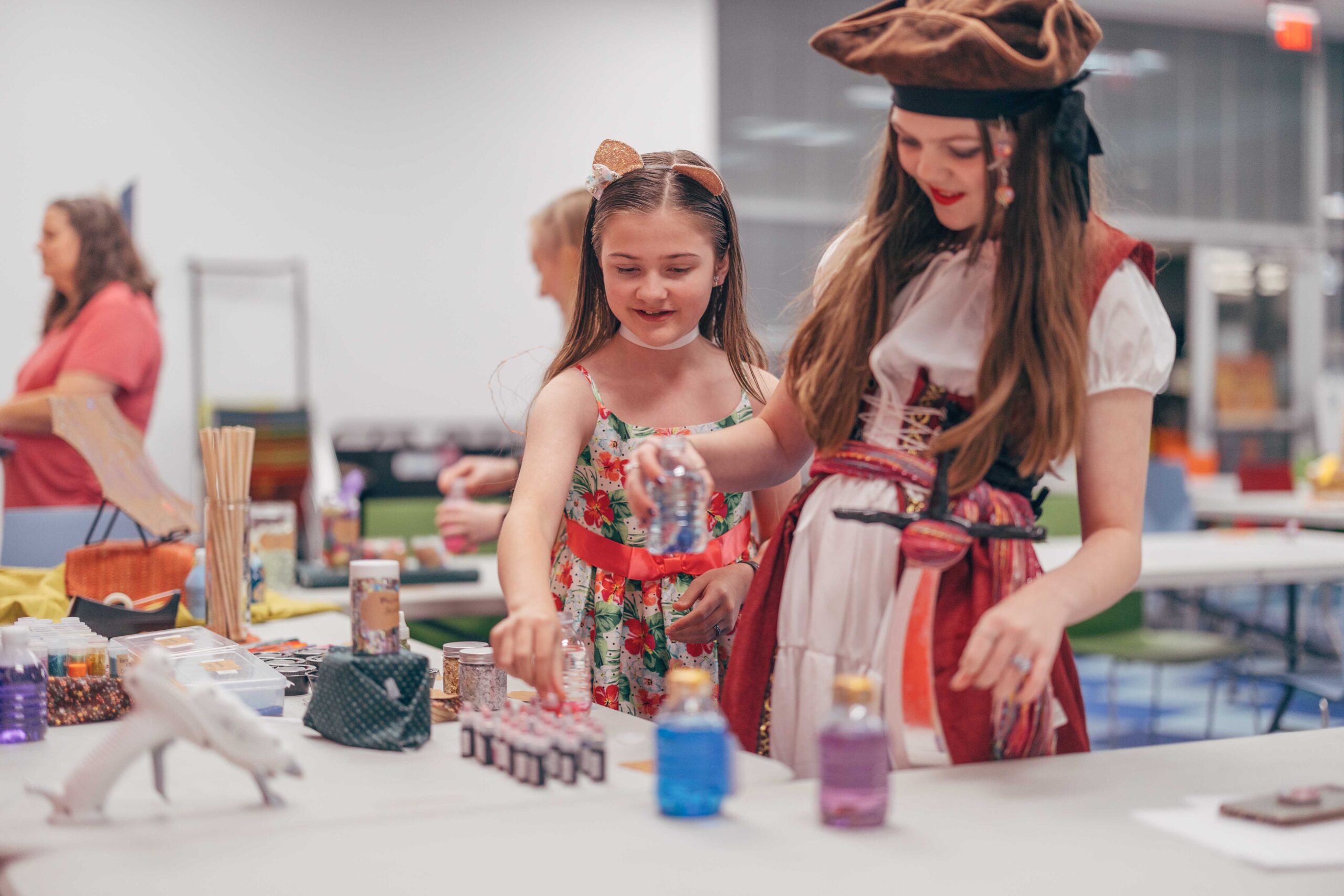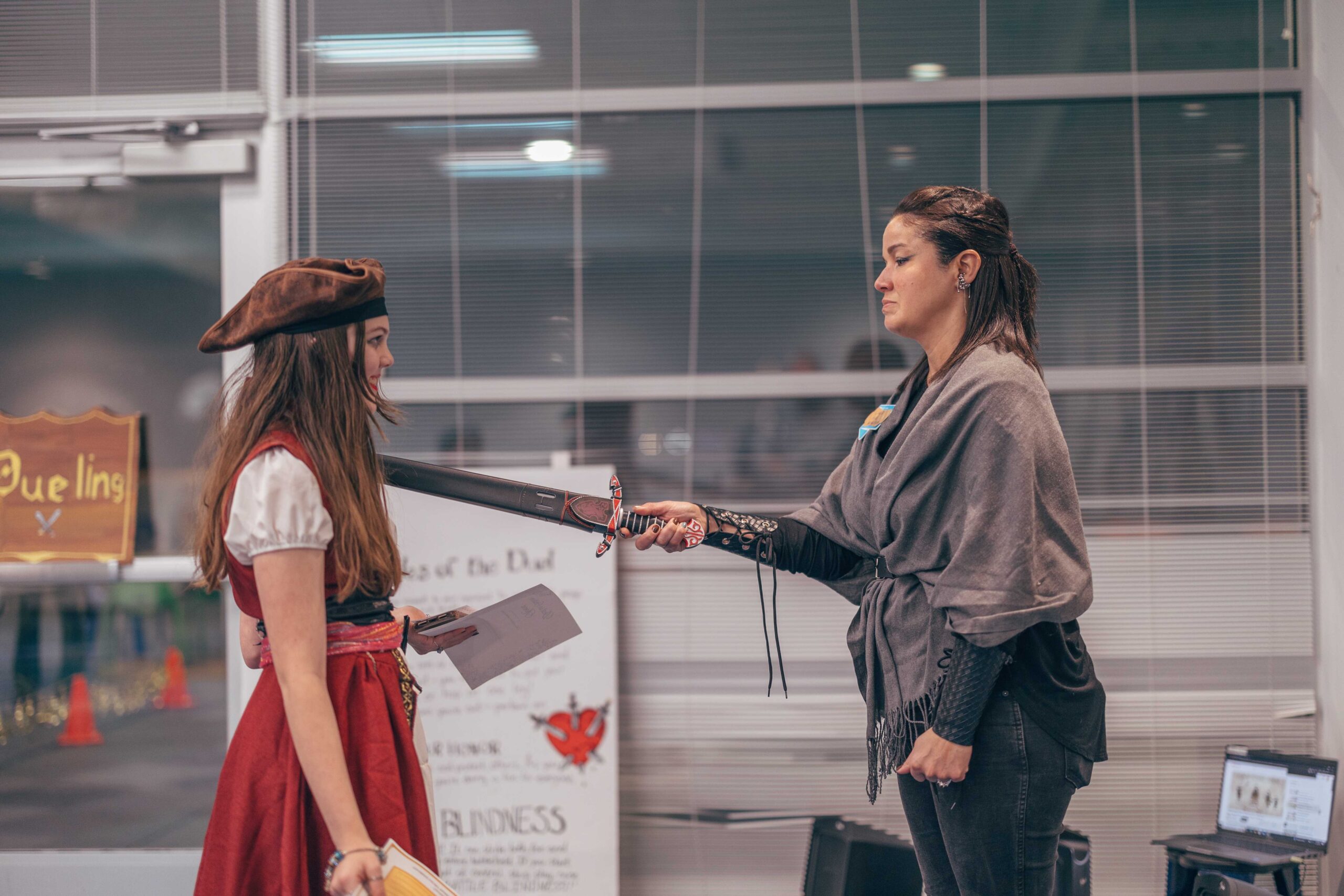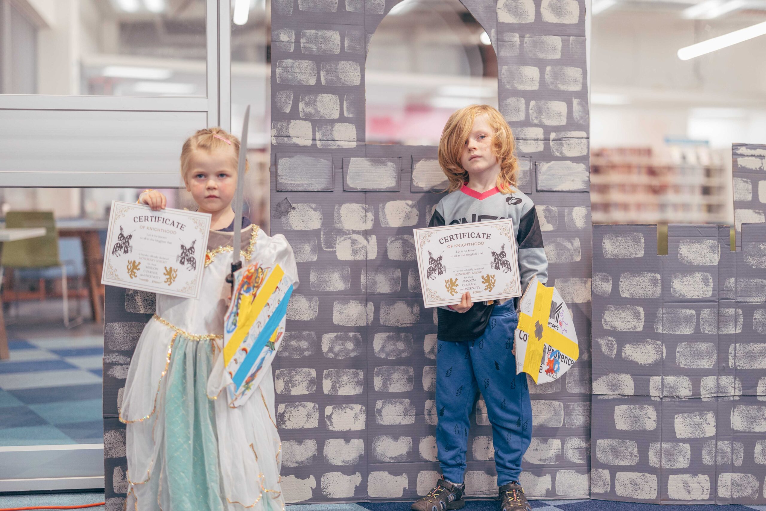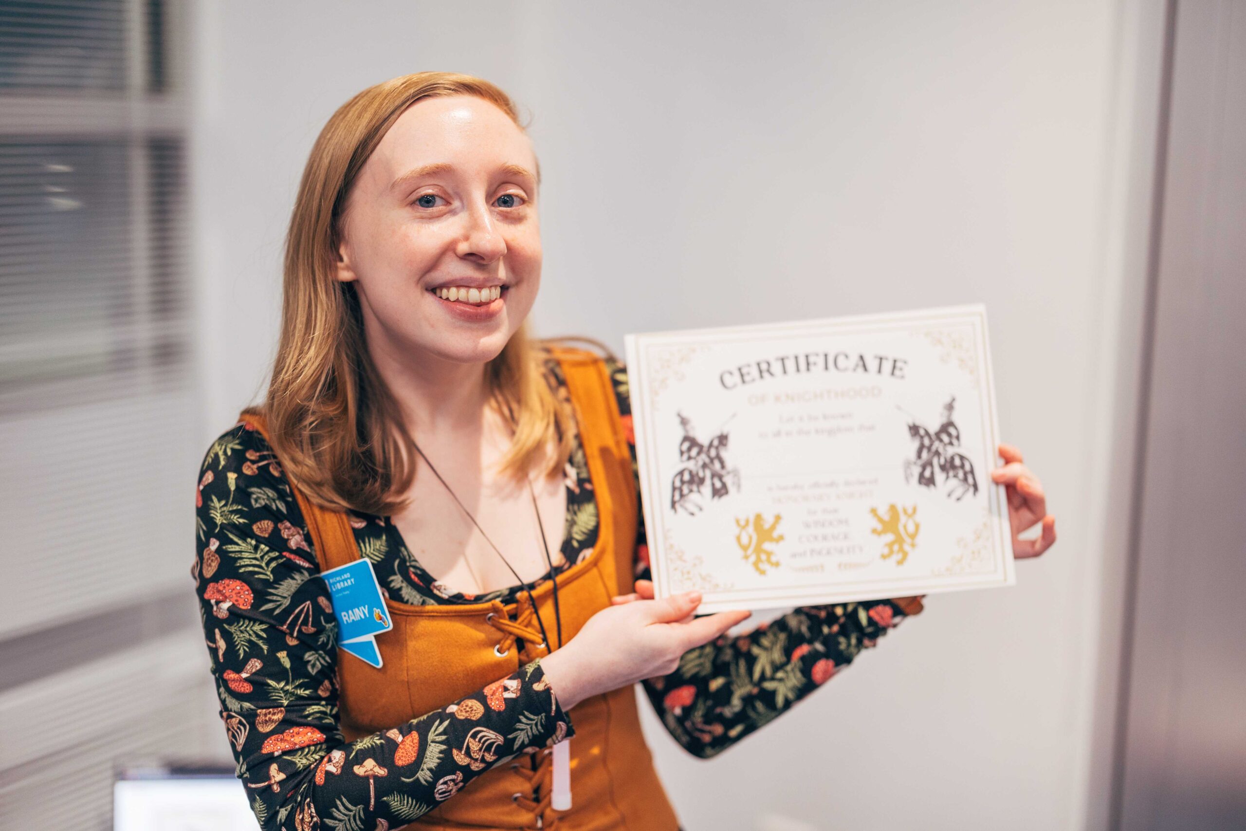 Activities included trinket trading, making your own coat of arms, making potion bottles, weaving looms, a dueling sword fight arena with foam swords, various riddles to solve, and a knighting ceremony. We also played “bardcore” versions of popular songs!